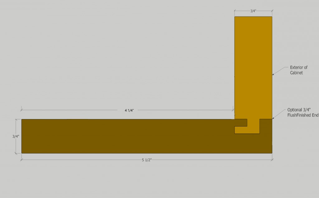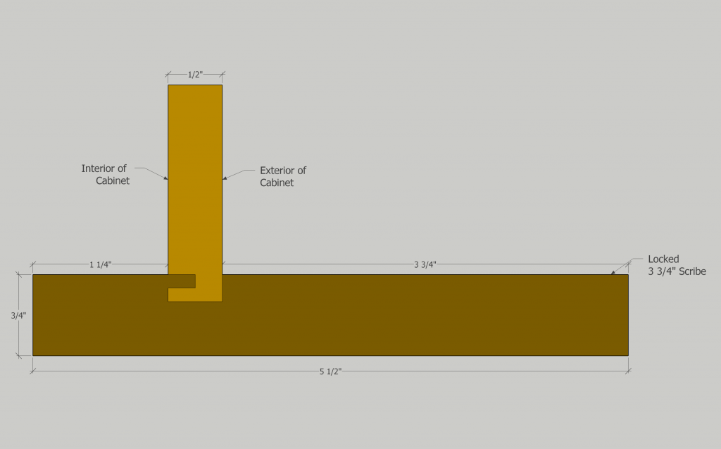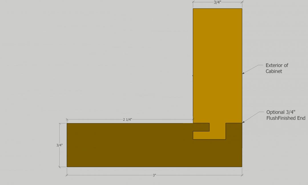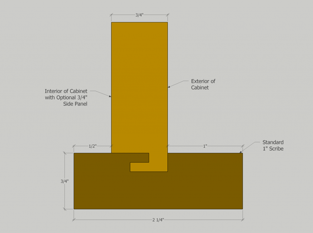 When a cabinet side is not “Finished” typically Cabinotch will default the thickness of that side panel to a ½” plywood component. You may choose to override this by selecting for “3/4in” side. NOTE, this does not effect “scribe” as it is measured from outside frame edge to outside of this side.