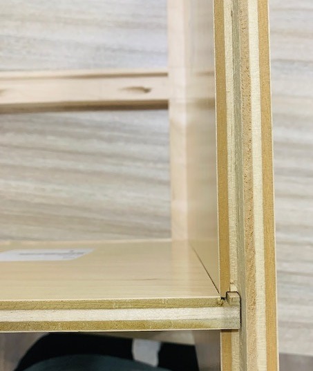 With our “Cabinotch” Construction method, theses sliding connections are also present in plywood-to-plywood joints, i.e., cabinet bottom sliding through the cabinet sides from the back of the cabinet.