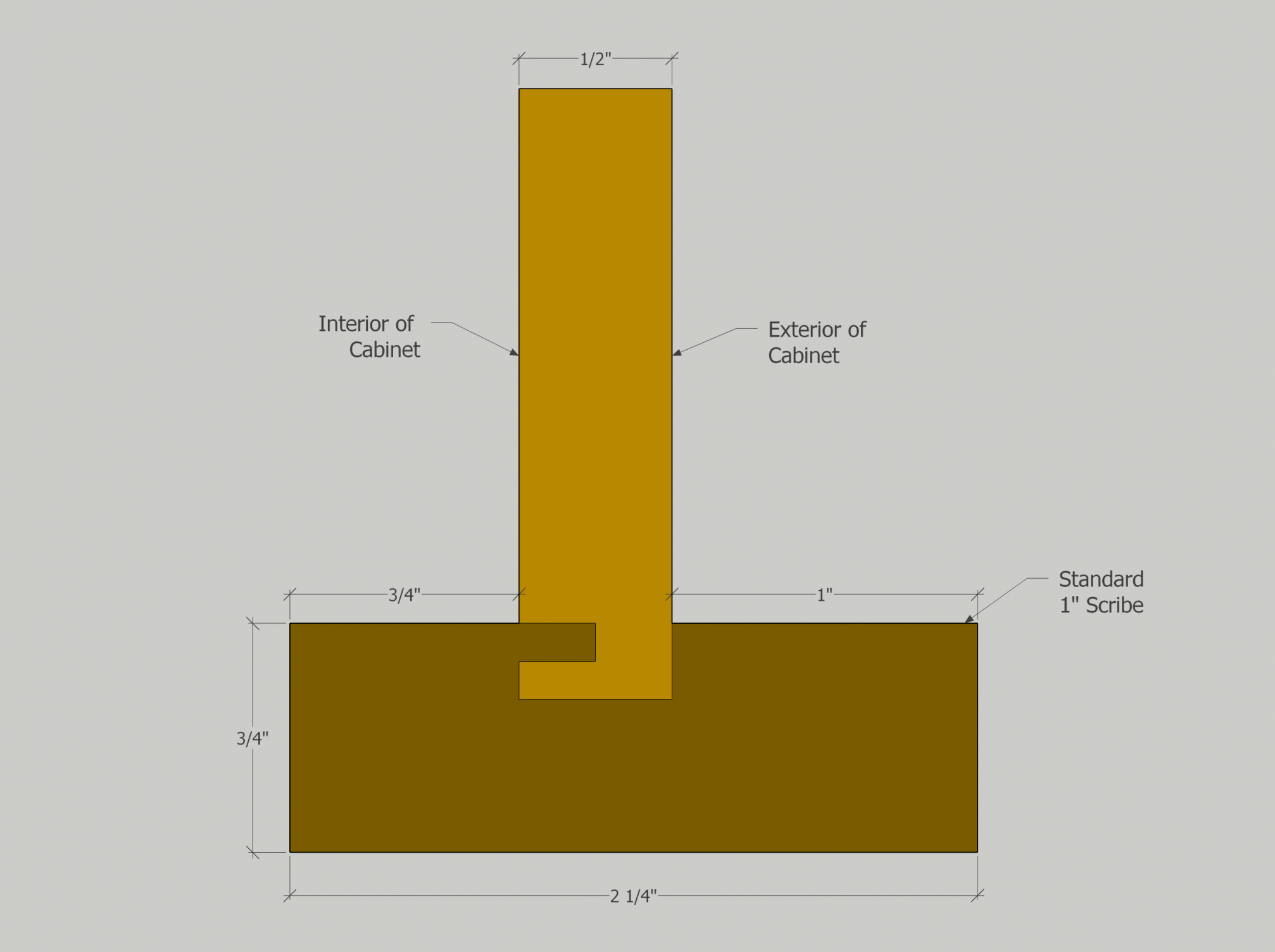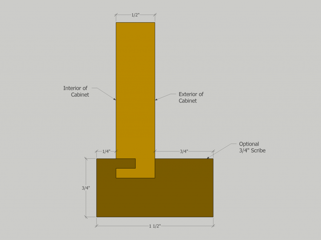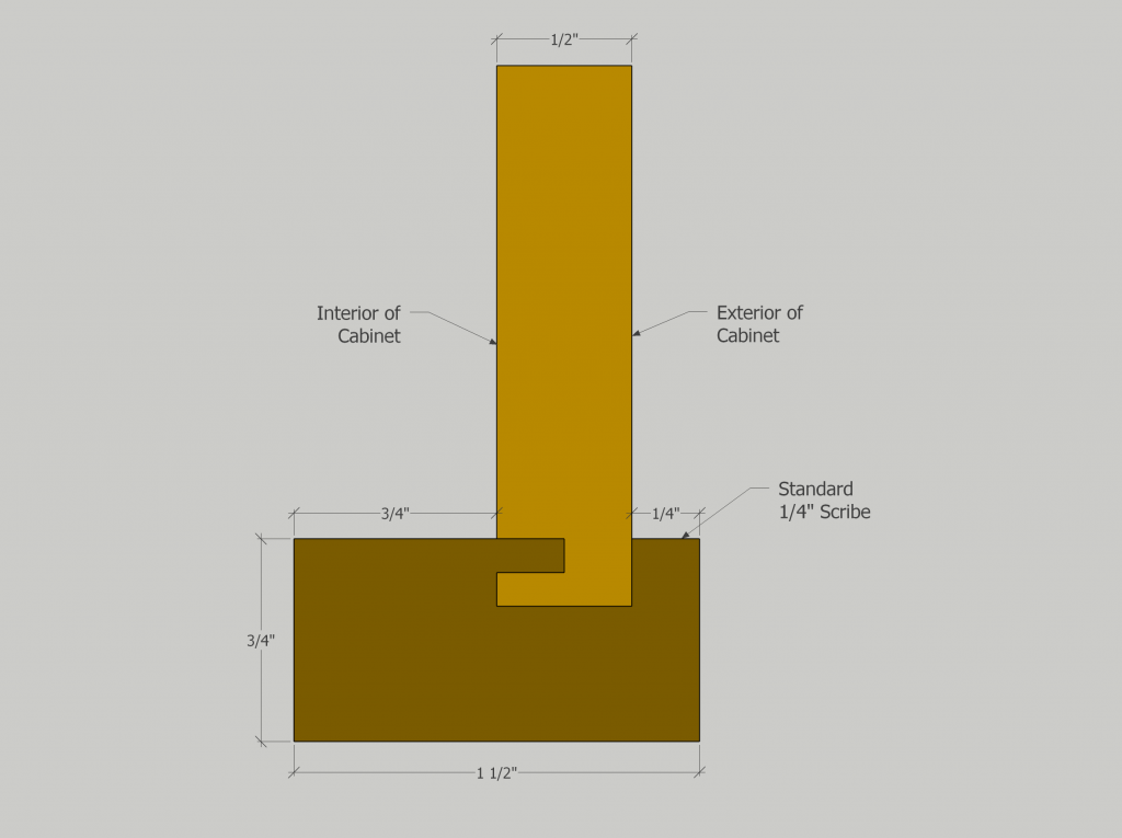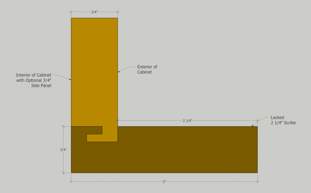 If ordering through the historical side of our webstore or via KCD Software you will note that typically the back of the cabinet, when installed, will physically be against the wall where cabinets are hung. With a selection of “Yes 3/8in” that back will instead be outset from the wall by a distance of 3/8” and therefore easier to scribe to walls where framing or drywall may prove difficult to hang cabinets plumb and square.