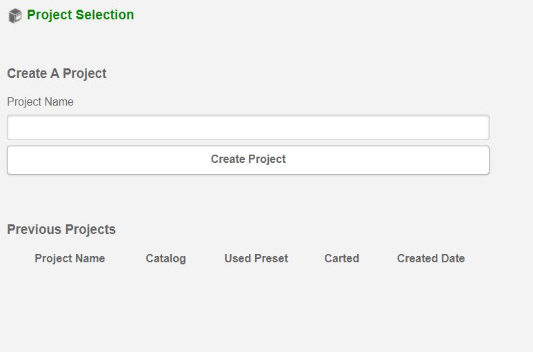 After logging into your account and finding the “Face Frame Cabinets” button from the website directory (left hand side of your browser), you will be directed to the “Project Selection Screen”
